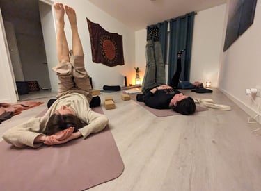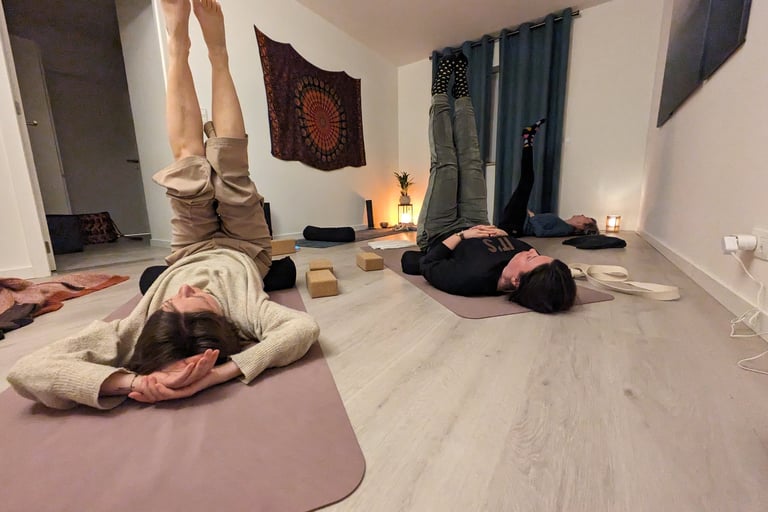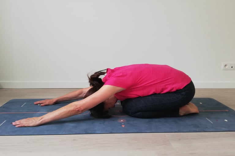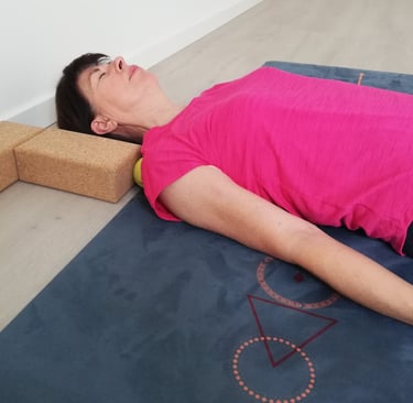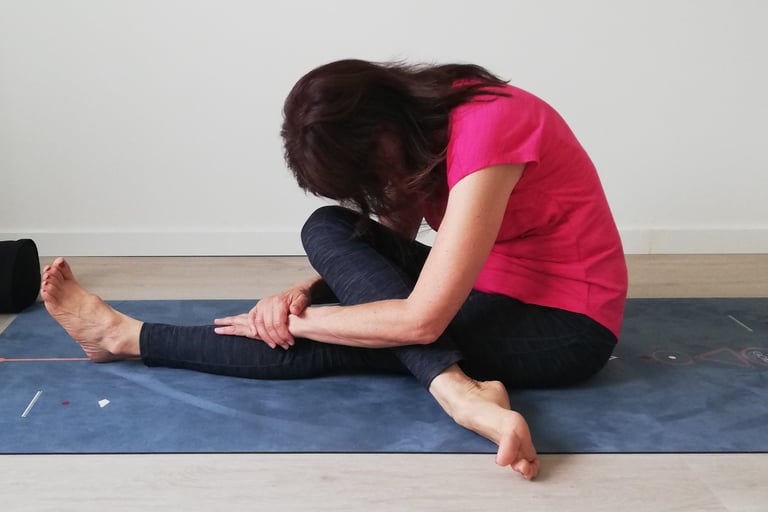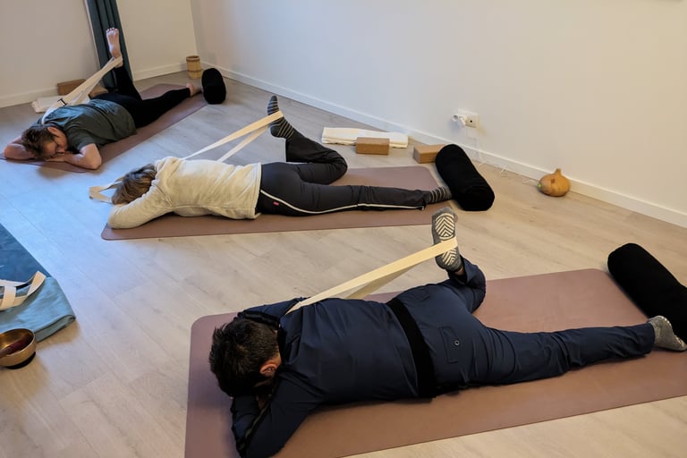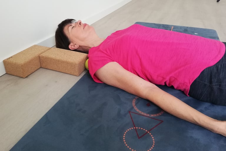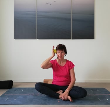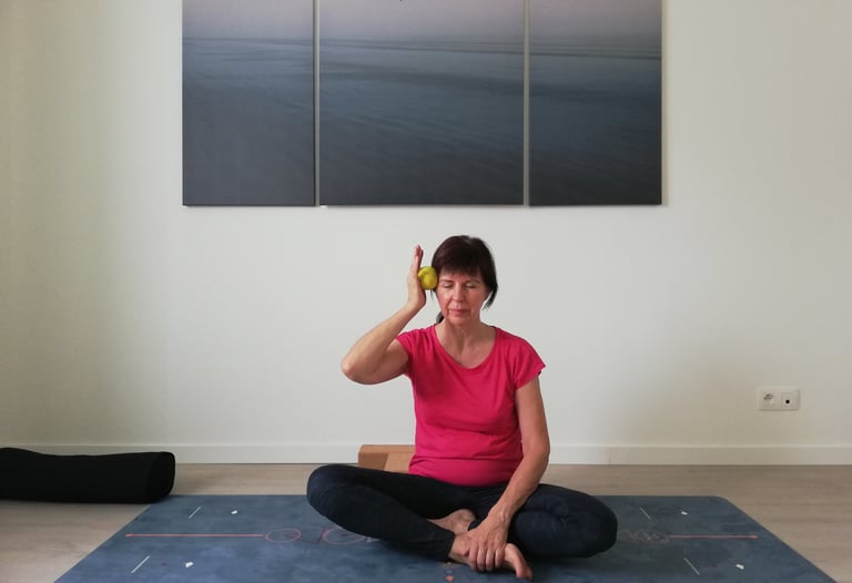 Voor het bindweefsel in en rond de spieren gebruiken we soms technieken van myofascial release (met behulp van balletjes en yoga-blokken), al dan niet in combinatie met een yin yoga houding.